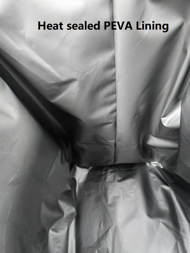 Por eso un mejor enfoque es el sellado de calor. Peva de enlace PEVA sellado por calor capas de material de revestimiento sin agujeros.